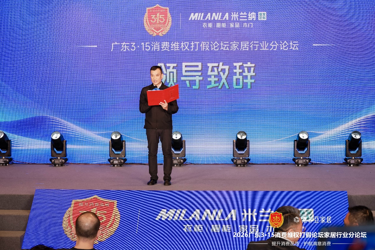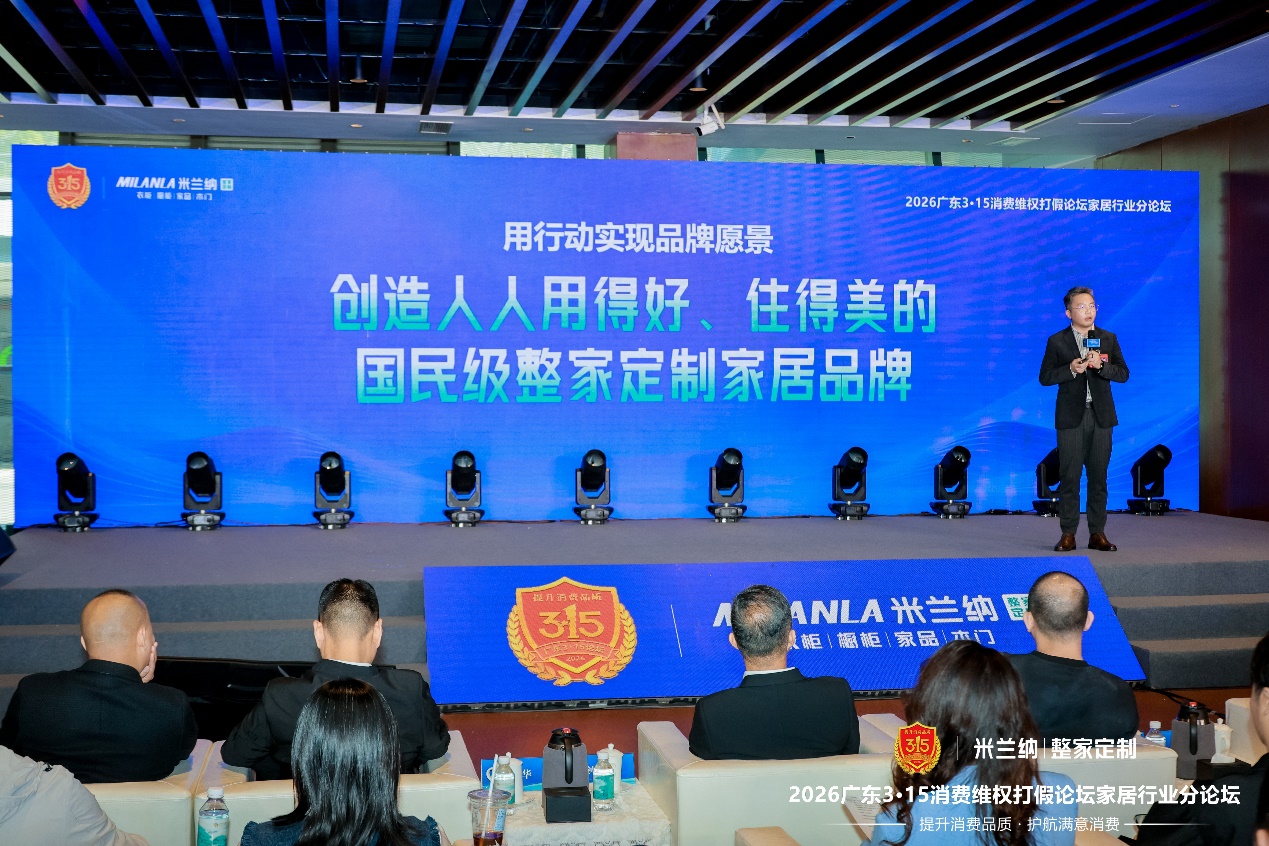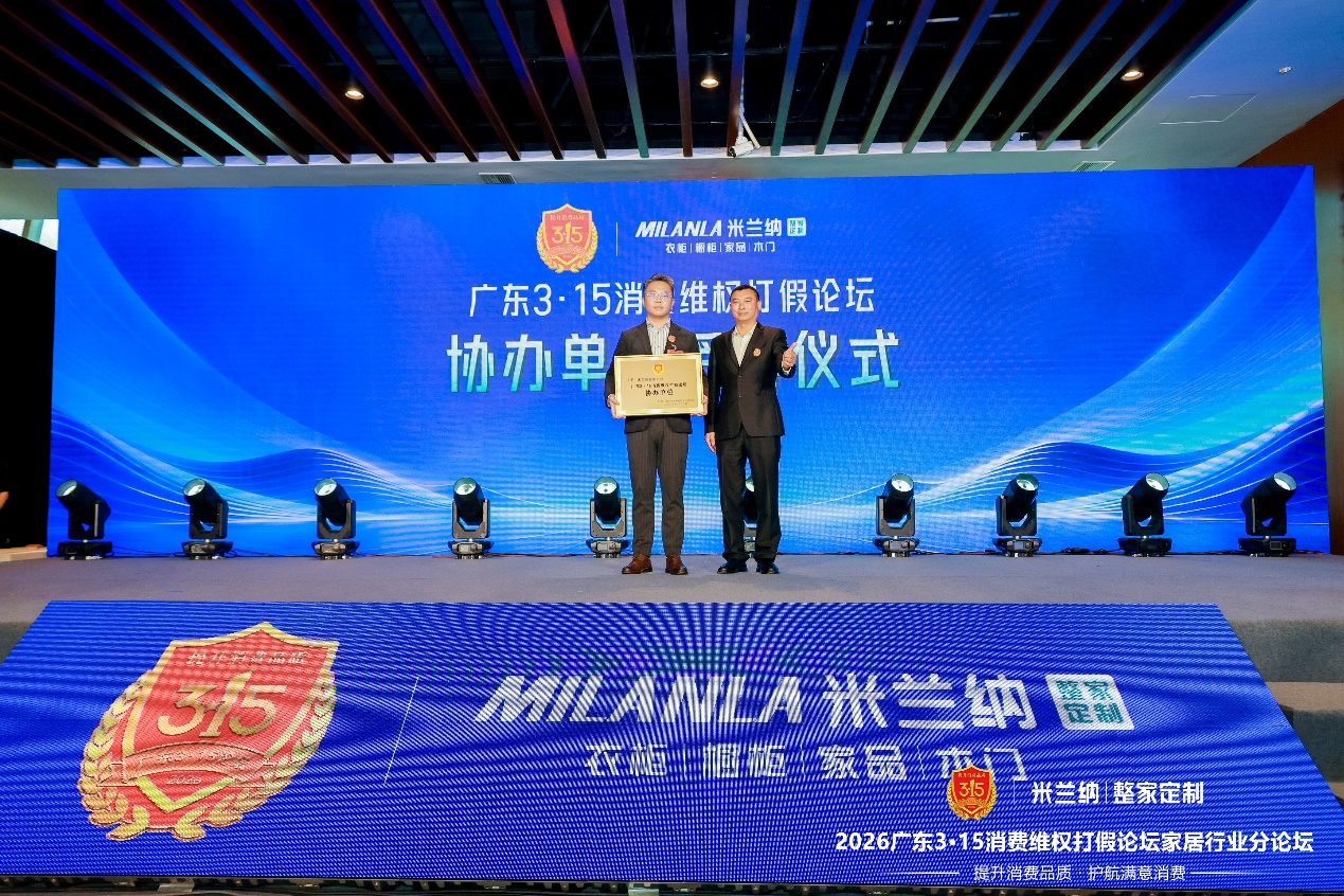 凭借在消费者权益保护领域的长期实践,米兰纳正式获颁“广东3·15消费维权打假论坛协办单位”牌匾。广东315组委会副秘书长戴峰为米兰纳整家定制总经理刘东东授牌。这一授牌意味着米兰纳从单一品牌的透明实践,升级为参与行业规则共建的重要力量,未来将以协办单位身份,深度参与放心消费相关标准研讨与推广工作。