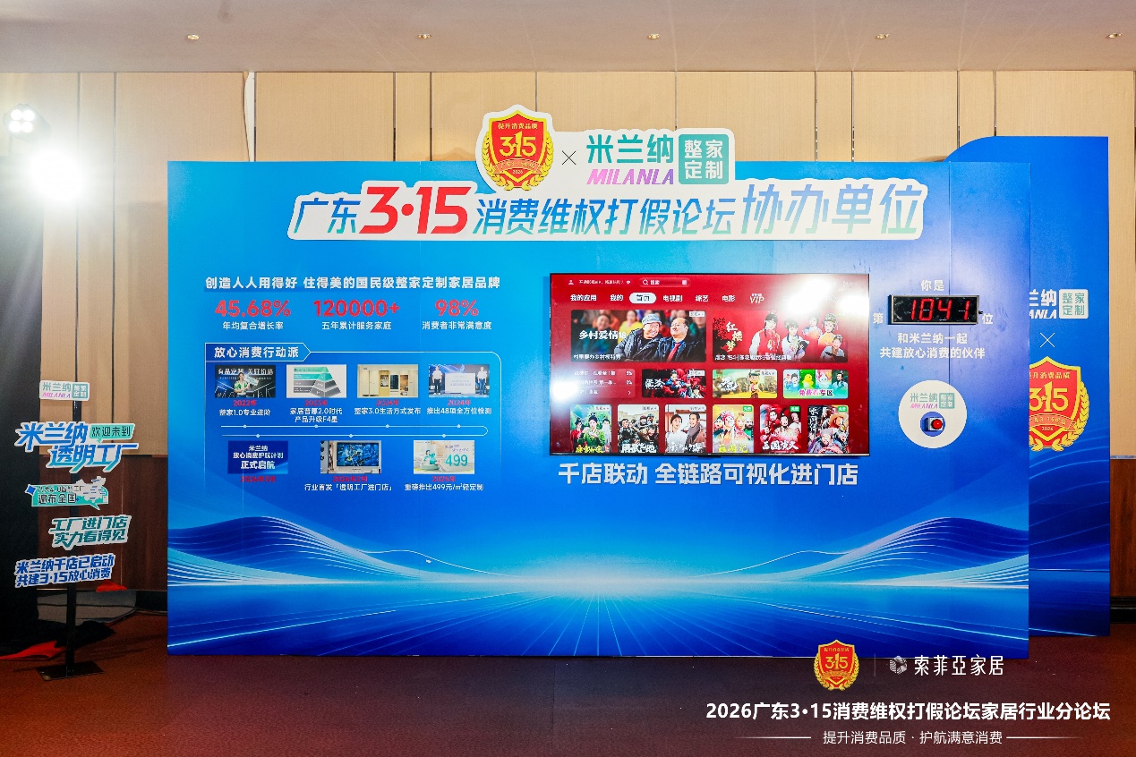 在消费维权与放心消费成为社会共识的当下,家居行业正经历一场以“信任重构”为核心的深度变革。中国消费者协会最新统计显示,过去一年家居类投诉中近四成涉及产品质量与宣传不符、交付过程不透明,信息不对称导致的“盲盒式消费”已成为行业系统性痛点。在此背景下,索菲亚家居集团作为行业唯一蝉联“广东3·15放心消费品牌”荣誉的企业,承办了本届论坛的家居行业分论坛,而米兰纳作为集团旗下整家定制品牌,也以协办单位身份深度参与。并依托集团工业4.0智造底座,率先以“透明工厂进门店”行动破题,将生产全流程、品控标准、检测数据置于阳光之下,为行业树立起“品质可验证、承诺可追溯”的放心消费新标杆。