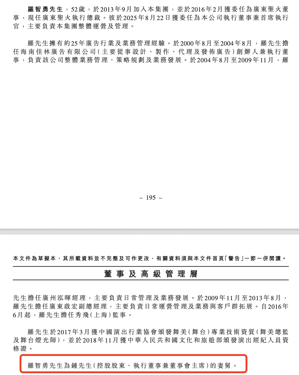 罗智勇拥有约25年广告行业及业务管理经验。于2000年8月至2004年8月,罗智勇担任海南佳林广告有限公司(主要从事设计、制作、代理及发布广告)创办人兼执行董事,负责该公司整体业务管理、策略规划及业务发展。于2004年8月至2009年11月,罗智勇担任广州泓晖经理,主要负责日常管理及业务发展。于2009年11月至2013年8月,罗智勇担任广东启宏副总经理,主要负责日常运营管理及业务与客户群拓展。自2016年6月起,罗智勇担任秀飞(上海)监事。