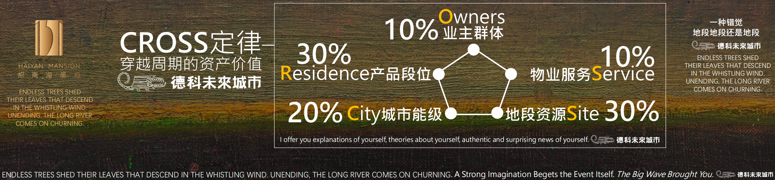 他指出:真正能够穿越周期的资产并非简单的资源堆砌,而是具备“地段稀缺性、品牌确定性、产品极致性”的不可复制组合。住宅产品的大迭代下,穿越周期的资产价值CROSS定律。