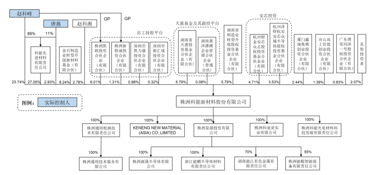 赵科峰、唐燕夫妇为公司的实际控制人,截至此前招股说明书签署日,其通过直接和间接持股方式控制公司61.05%的股份。