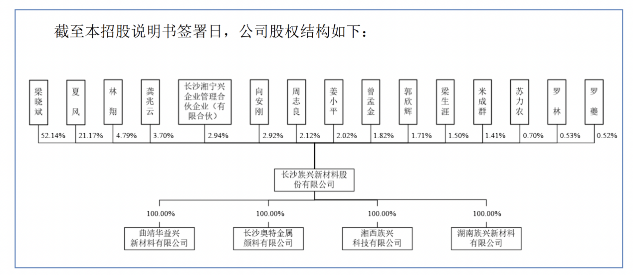 族兴新材的控股股东、实际控制人均为梁晓斌,IPO前,梁晓斌持有公司股份5057.75万股,占总股本的52.14%。另外,公司副董事长夏风持股21.17%。
