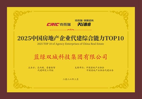蓝绿双城科技集团有限公司荣获“2025中国房企代建综合能力TOP10”