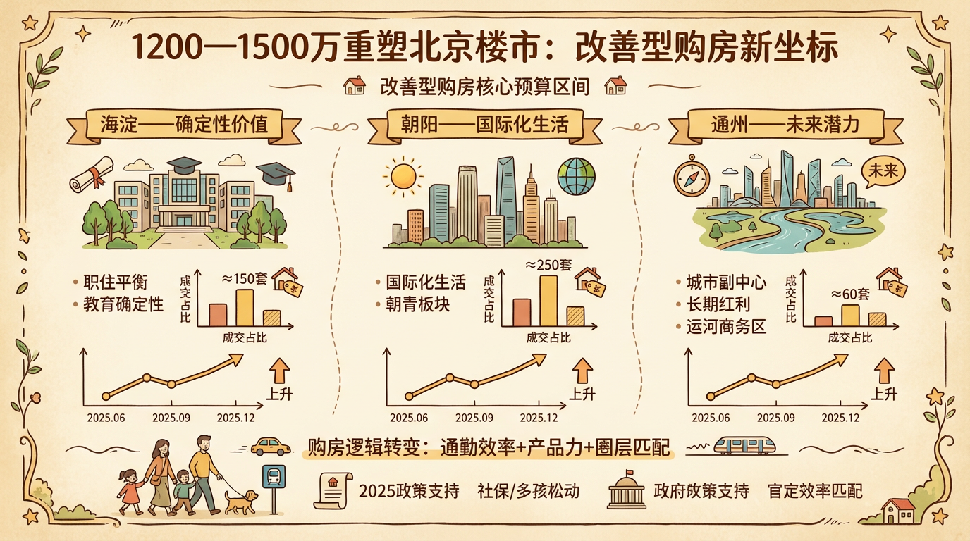 自2025年6月以来,北京新房成交的重心,正在明显向中高总价改善区间迁移。其中,总价1200—1500万元,逐步成为最具代表性的价格带。这一变化并非偶发,而是收入结构、家庭结构与居住观念共同演化的结果。