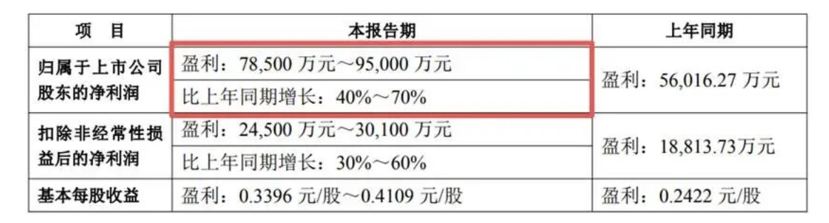其发布业绩预告称,去年实现归属于上市公司股东的净利润,为7.85亿元至9.5亿元,同比增长40%至70%。