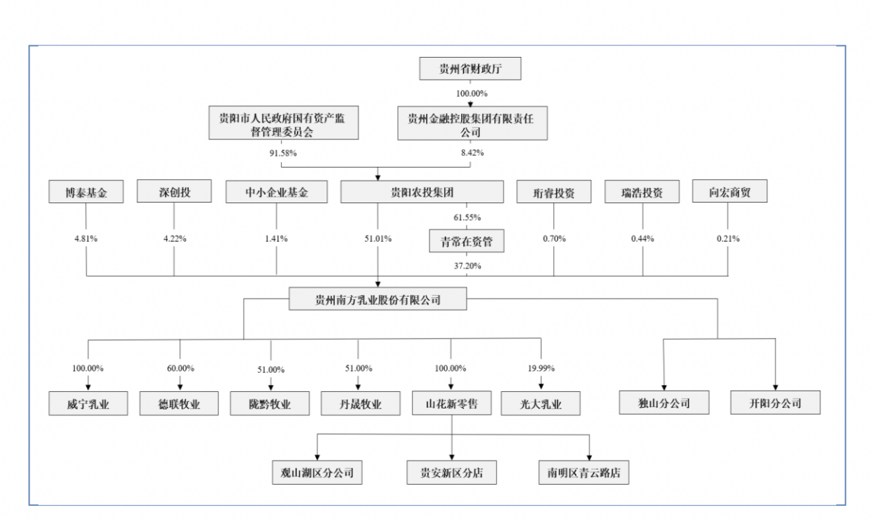 IPO前,贵阳农投集团直接持有公司7650.95万股股份,占公司本次发行前总股本的51.01%,为公司的控股股东;同时贵阳农投集团直接持有青常在资管61.55%的股权,为青常在资管的控股股东,青常在资管直接持有公司5580万股股份,占公司本次发行前总股本的37.20%。因此,贵阳农投集团合计控制公司88.21%的股权。