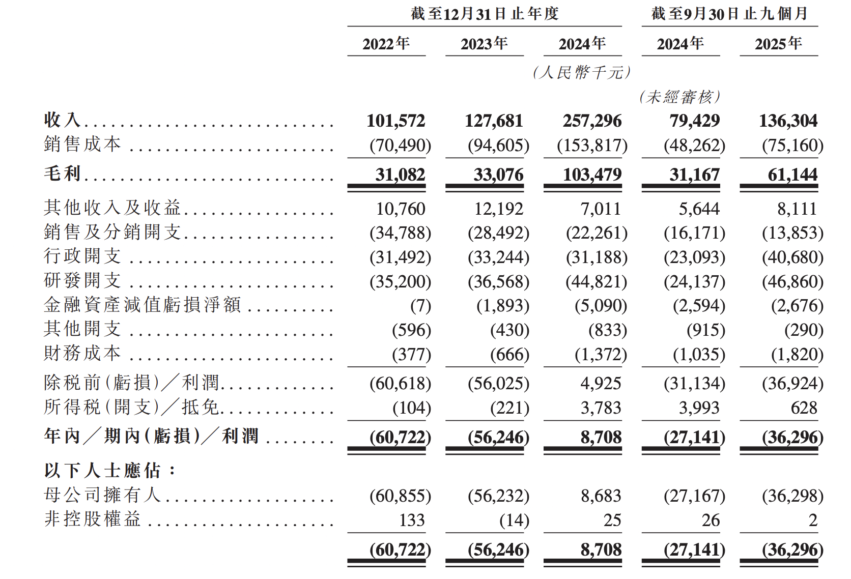 2022年至2024年,极视角收入分别为1.02亿元、1.28亿元、2.57亿元,年内利润分别为-6072.2万元、-5624.6万元、870.8万元,毛利率分别为30.6%、25.9%、40.2%。