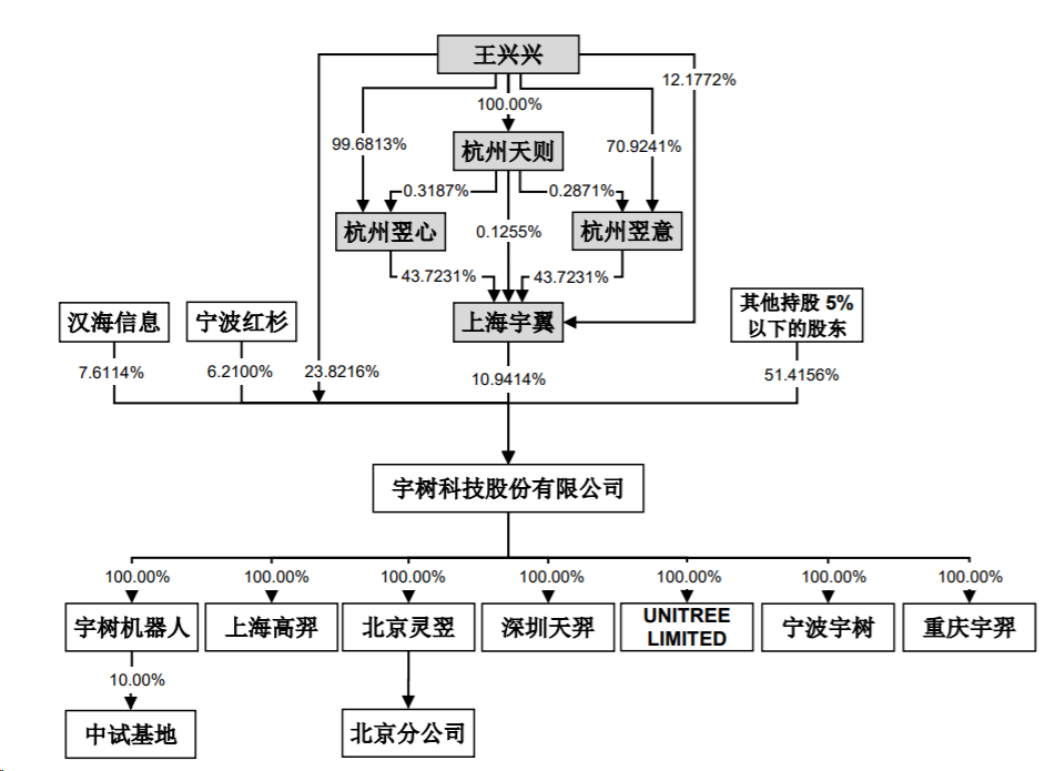 宇树科技由董事长王兴兴控制68.78%表决权,3名核心技术人员均是90后