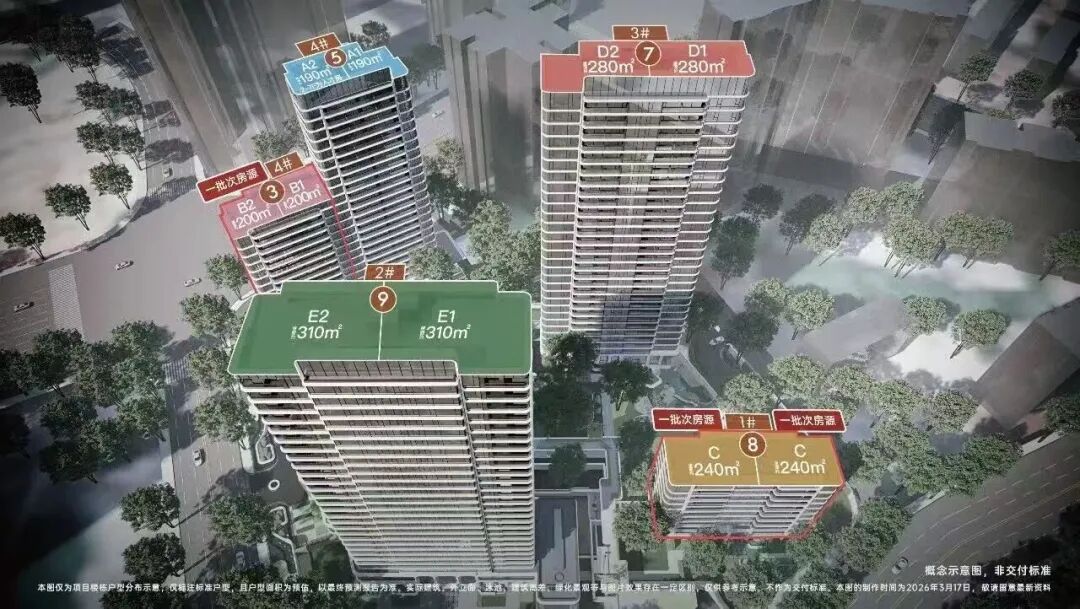 潮鸣外滩整个项目一共194套房源,清一色190-310㎡的大户型。