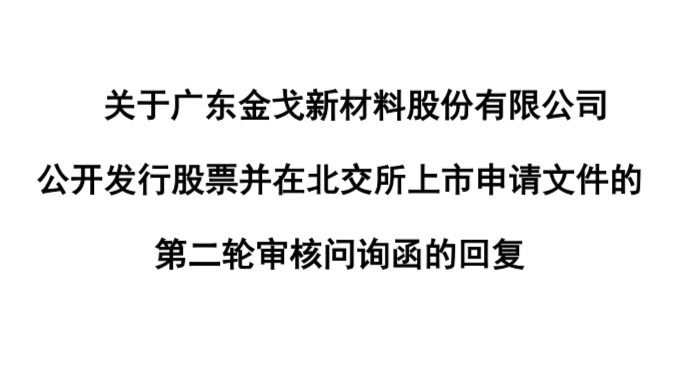 瑞财经 严明会 近日,广东金戈新材料股份有限公司(以下简称:金戈新材)北交所IPO披露第二轮问询回复文件,将于近期上会,保荐机构中金公司,保荐代表人杜书、潘晨,会计师事务所为天健会计师事务所。