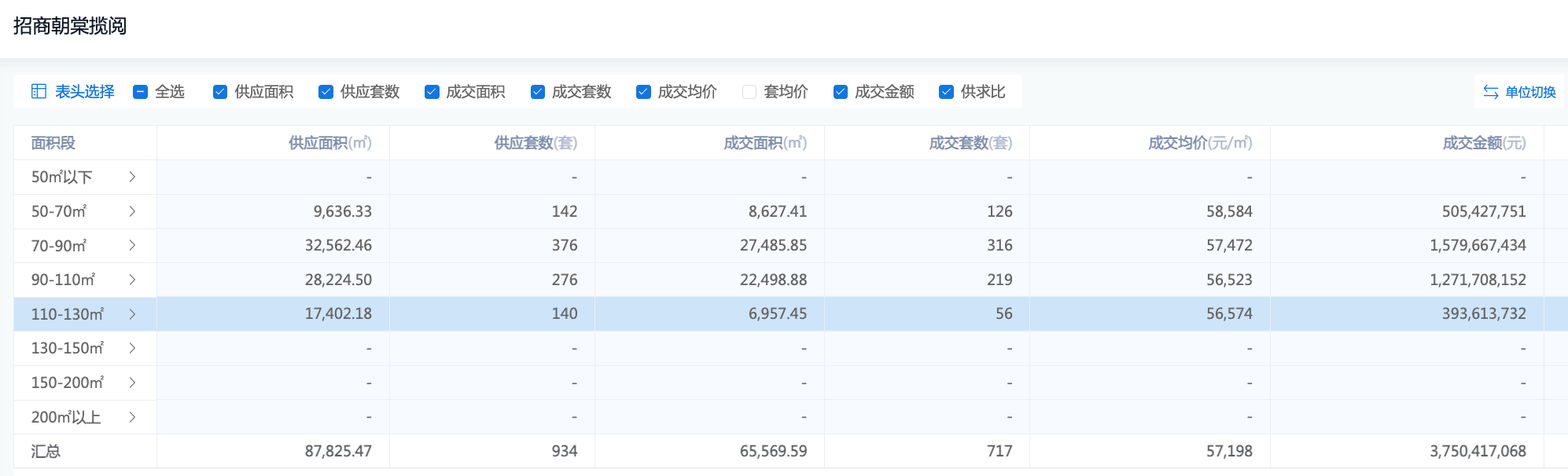 与当前市面上新盘常见的成交表现相反,朝棠揽阅小户型单价、流量双高,大户型反而卖得差一些。