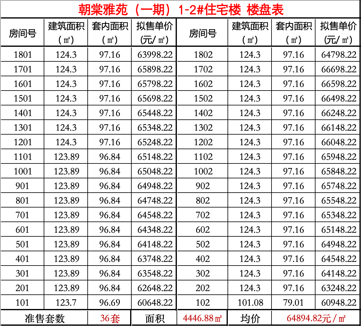 共36套,拟售均价6.49万元/㎡。
