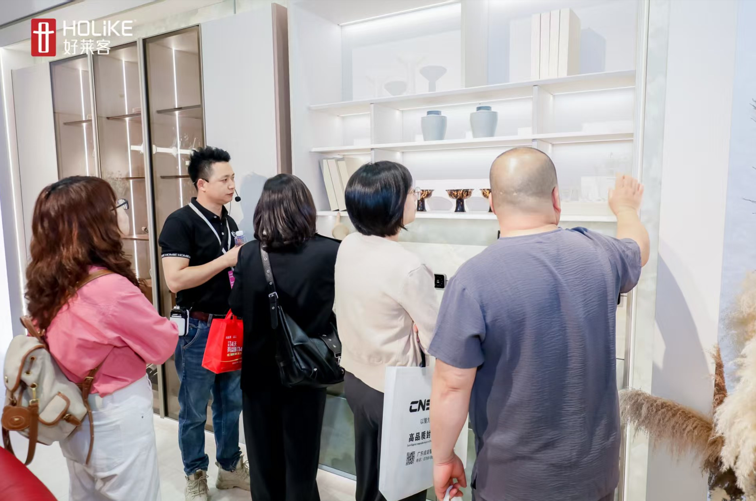 一直以来,好莱客持续关注消费者的需求,以原创设计为起点,联动国际设计大师深度共创,将大师跨界灵感美学与高阶工艺创新注入全屋场景化解决方案,为消费者打造兼具美学与智能的品质好家。本次广州定制展,好莱客携大师级美学新品海棠系列与AI智能家居重磅登场,以硬核实力打造有美感、有质感、会思考、懂人心的未来好家体验。吸引众多观展者驻足观摩,获得一致好评。