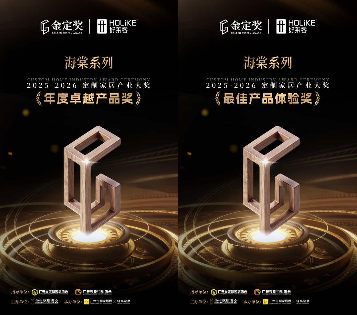 展会期间,由广东省定制家居协会、广东衣柜行业协会两大权威协会指导,金定奖组委会特别发起“金定奖·2025-2026中国定制家居产业大奖”评选,好莱客携手香奈儿合作艺术家Ana Tortos联名之作——海棠系列凭借大师级的家居设计美学、高端的设计工艺,荣获金定奖·年度卓越产品奖与最佳产品体验奖,这是权威协会对大师级设计美学的高度肯定。