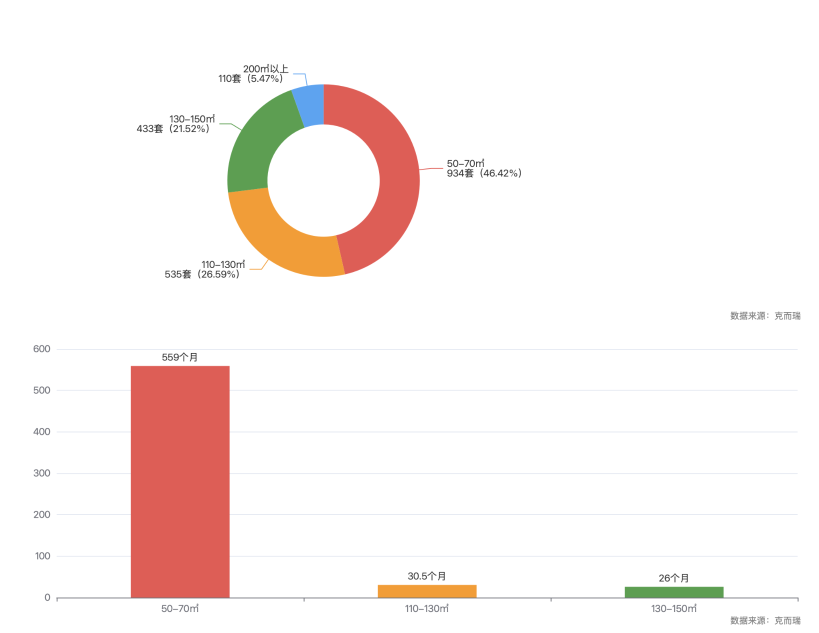 根据克而瑞数据,观宸二期所处的新宫板块,建面110-130㎡库存535套,去化周期已达30.5个月;130-150㎡的改善段库存433套,去化周期26个月 。