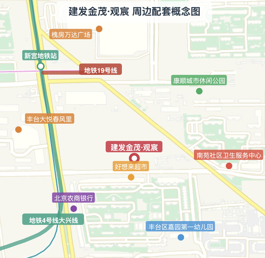 项目距新宫地铁站仅约300米,这里是4号线与19号线的双轨交汇点。5站直达金融街,6站到丽泽商务区,北向串联西单、中关村、五道口。对于在金融街或丽泽工作的买家,门到门通勤时间能控制在30分钟内;即便去中关村,也能控制在1小时内 。