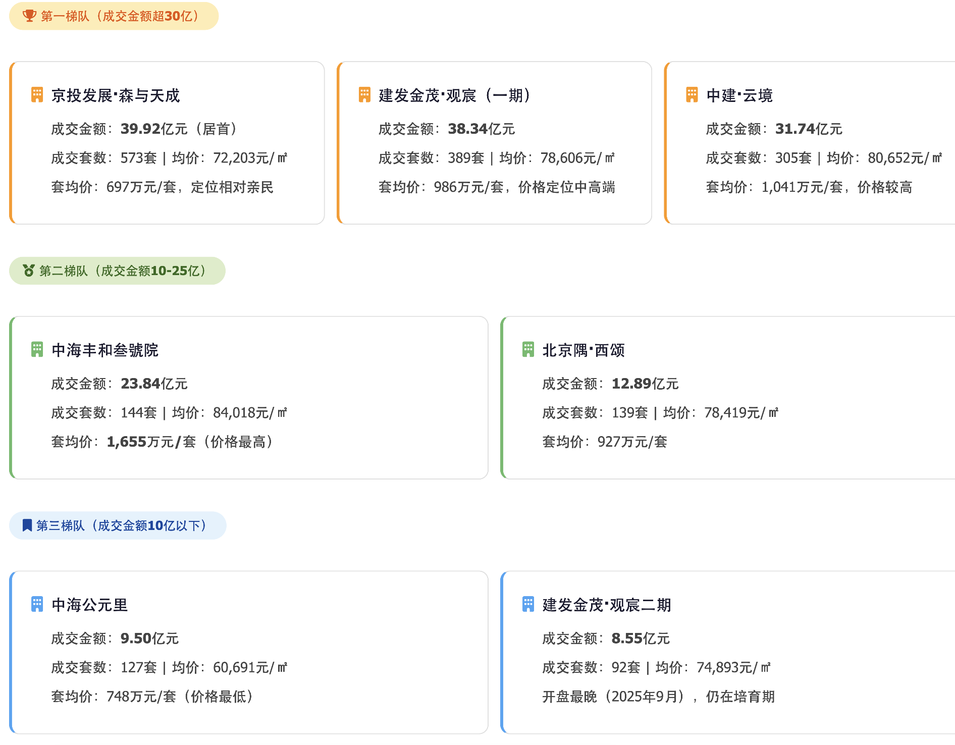 建发金茂·观宸二期:成交金额8.55亿元,成交92套,成交均价74,893元/㎡,套均价930万元/套,开盘时间最晚(2025年9月),市场表现仍在培育期。
