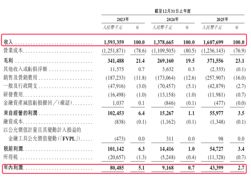 数聚智近三年业绩存在波动。收入由2023年的15.93亿元减至2024年的13.79亿元,主要由于国内电商品牌运营的收入下降;由2024年的13.79亿元增至2025年的16.08亿元,主要由于海外电商品牌运营收入增加。年内利润从2023年8048.5万元跌至2024年仅916.8万元;2025年回升至4339.9万元,但仍不足2023年的六成。