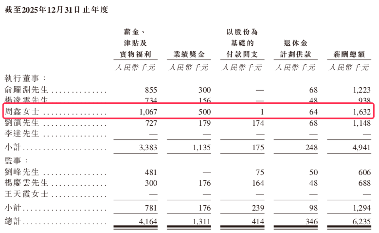 2025年,周鑫薪酬为163万元,高于董事长兼总裁俞跃渊。