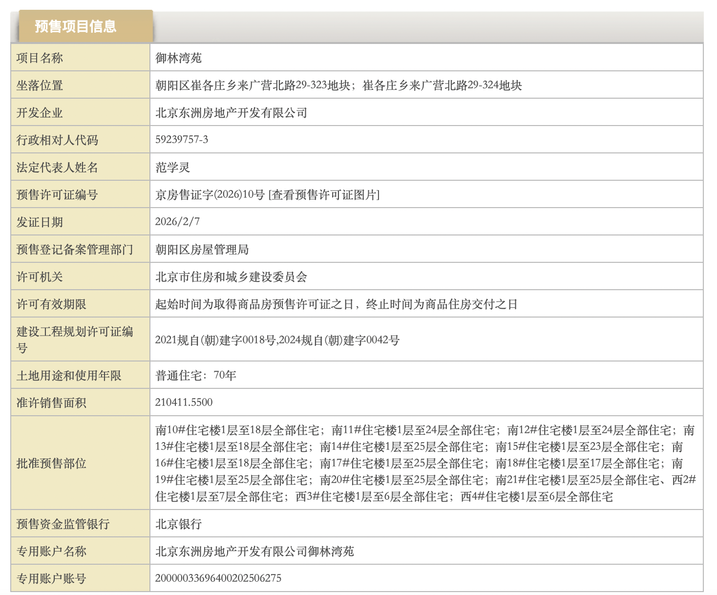 据了解,今年2月7日,首农御林湾拿到预售证,共15栋住宅楼,批准销售1563套房源,拟售均价7.81万元/㎡。