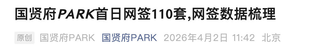据国贤府PARK官微披露,项目于4月1日开始网签,当日网签110套。