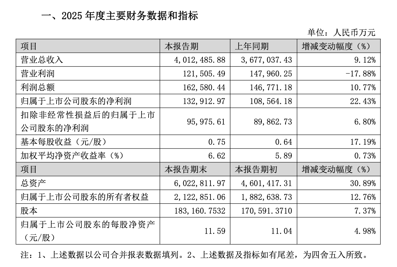 而2025年,东山精密实现营业总收入为401.25亿元,同比增长9.12%;归母净利润为13.29亿元,同比增长22.43%。