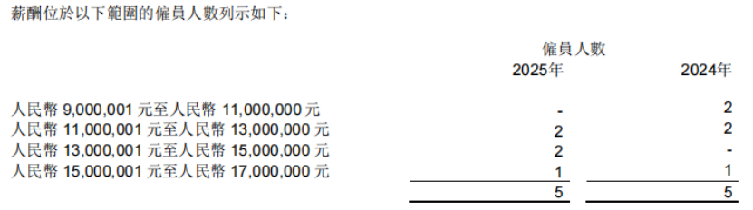 在中国银行H股财报当中,2025年,该行五位最高薪人士合计薪酬6000万元,同比下降了7.69%。