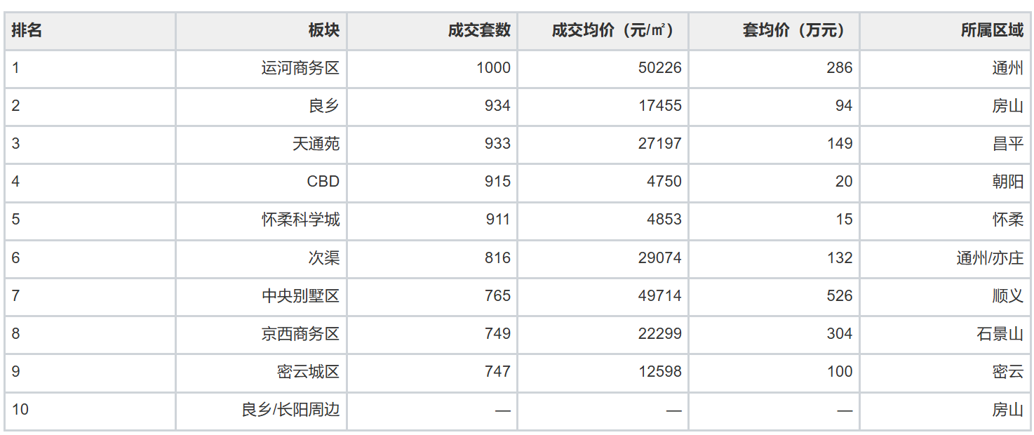 注:CBD板块套均价20万、怀柔科学城套均价15万的数据,极可能包含共有产权房或特殊产品类型的集中网签,并非普通商品住宅价格水平,解读时需注意。