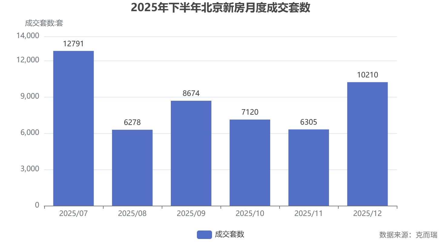 2025年下半年成交呈现"脉冲式"特征——7月因政策刺激冲高(12791套),随后快速回落,11月跌至6305套,12月在年末限购松绑刺激下反弹至10210套。这种模式说明:北京楼市高度依赖政策脉冲,内生需求动能仍然不足。