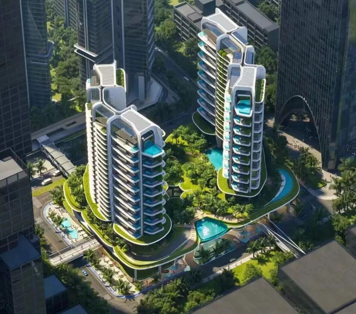 设计上融合新加坡垂直绿洲、迪拜超未来主义、迈阿密度假风三大国际豪宅风格。