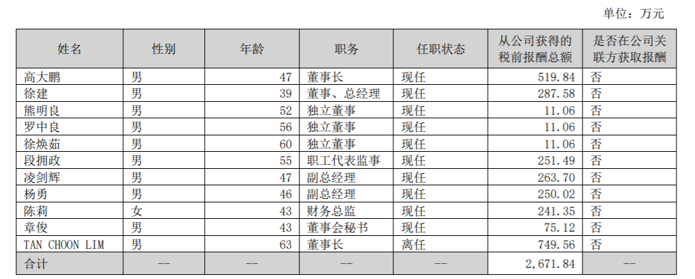 2025年,董事长高大鹏、总经理徐建、副总杨勇均涨薪百万元。