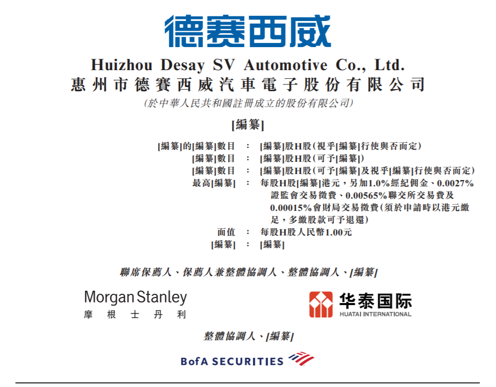 瑞财经 王敏 4月12日,据港交所披露,惠州市德赛西威汽车电子股份有限公司(以下简称“德赛西威”)向港交所主板提交上市申请书,摩根士丹利和华泰国际为联席保荐人
