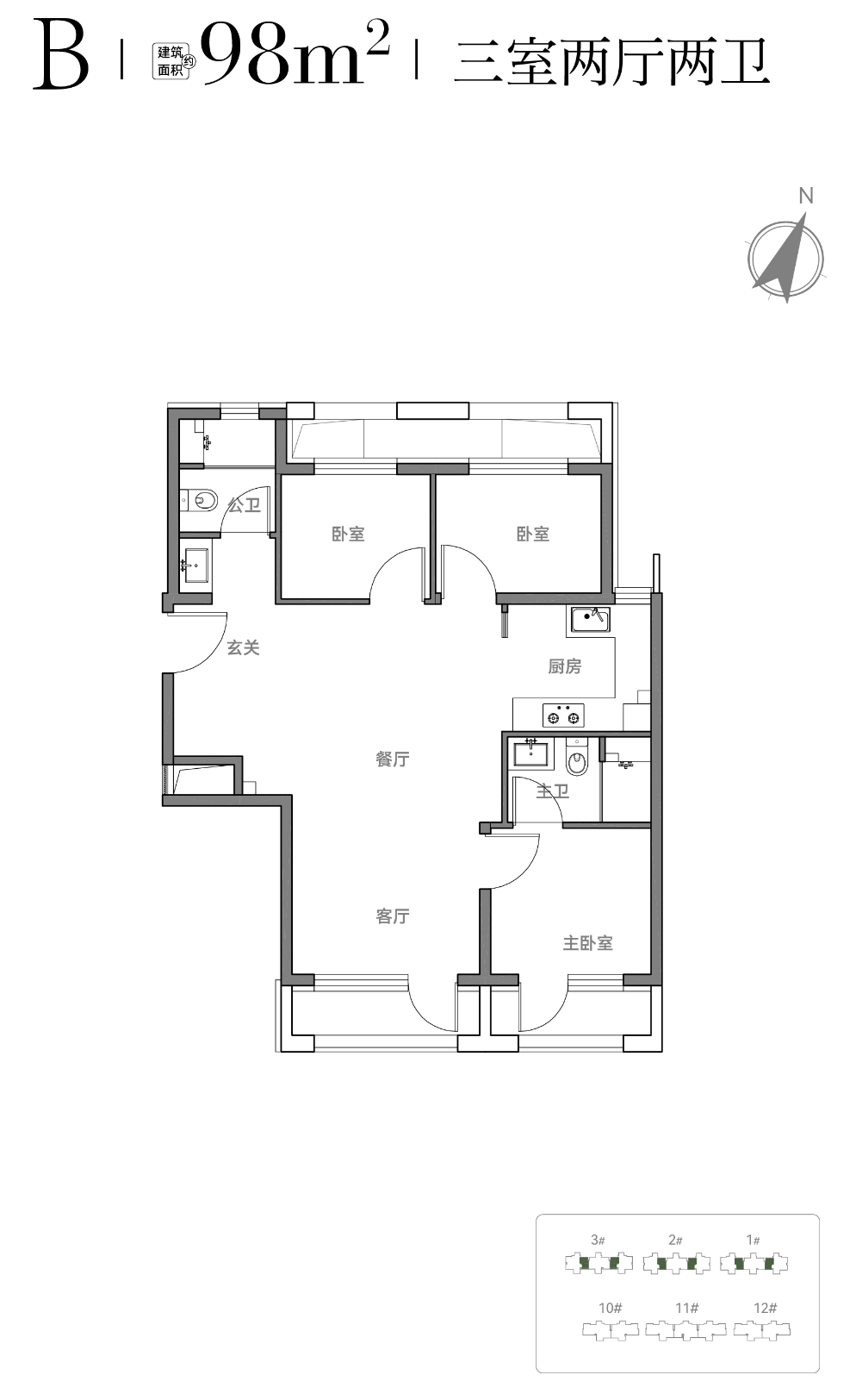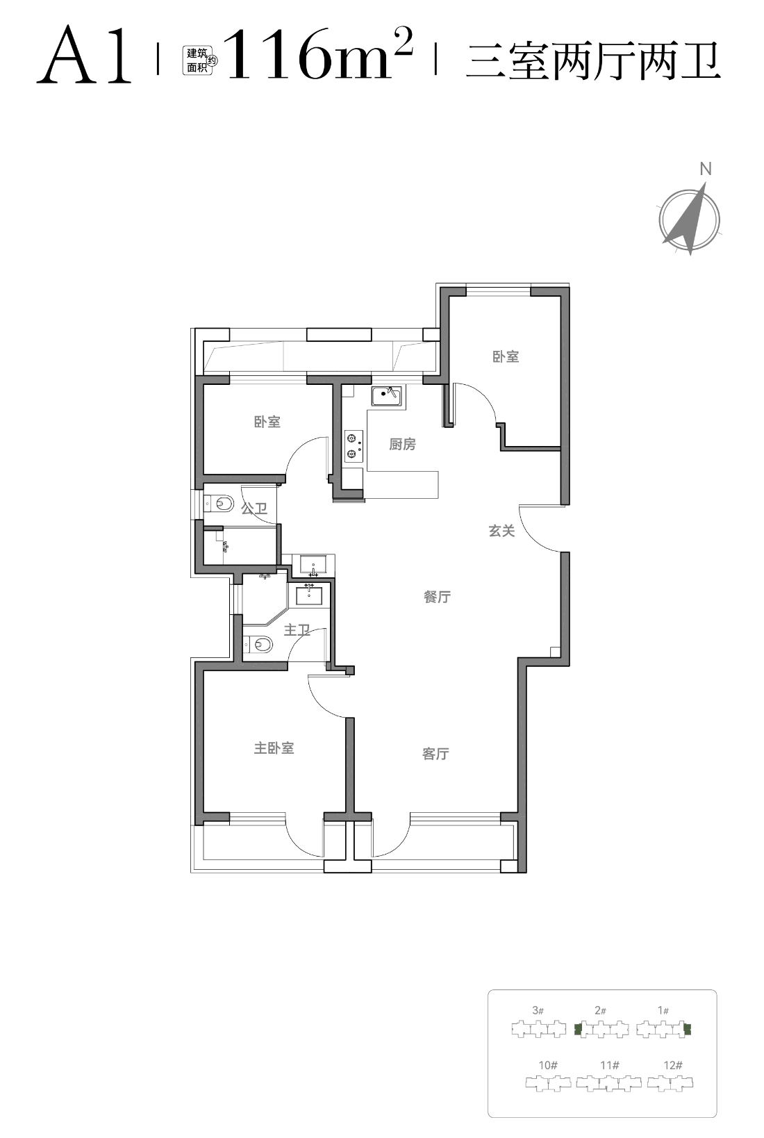 北排1#、2#、3#楼+东南角的12#楼,共4栋546套。