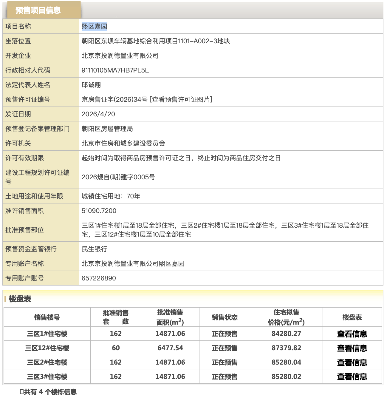 北京进深 徐迪 4月20日,位于朝阳东坝的京投北熙区三区取得预售证。