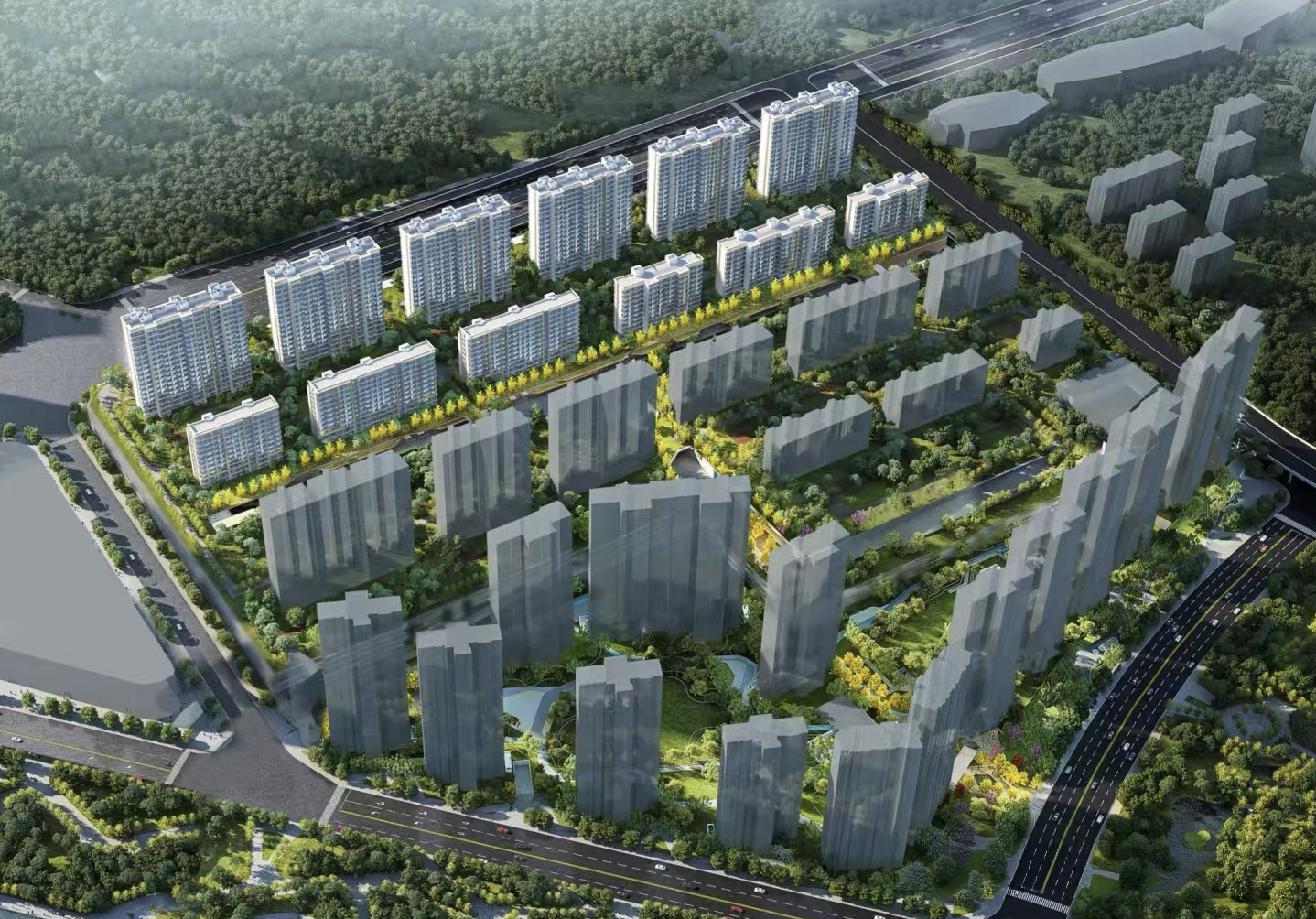 总建面36.4万㎡,是一个大体量超级社区,规划34栋住宅楼。