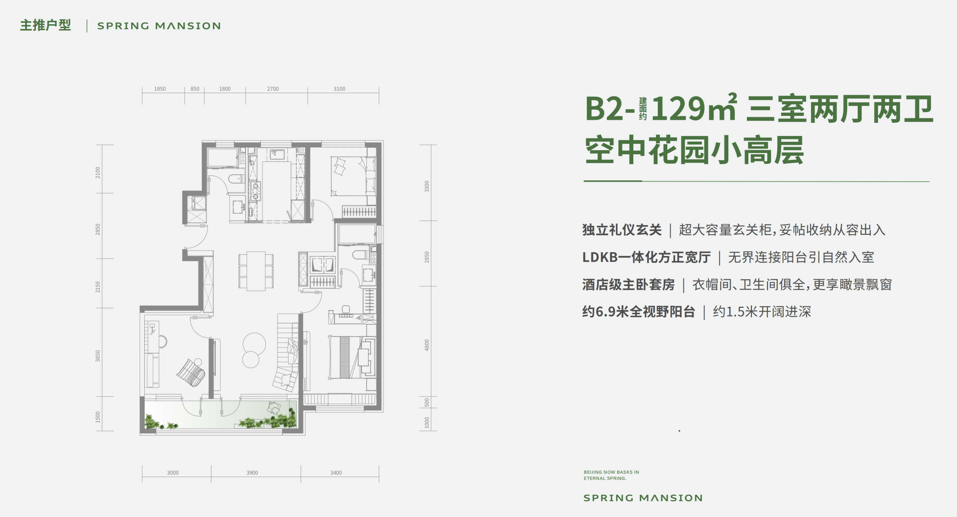 主推129/163/192㎡平层以及208-283㎡叠墅。