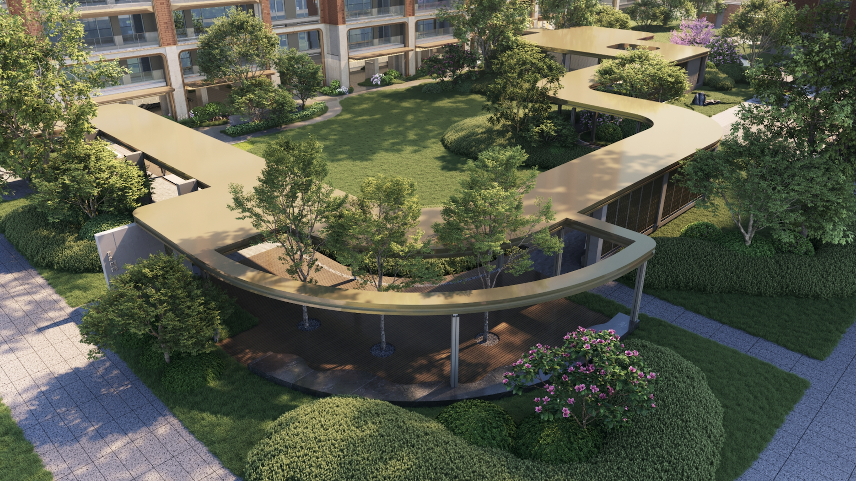 公共空间方面,兴创沐春墅配置了架空层+风雨连廊+邻里共享中心。