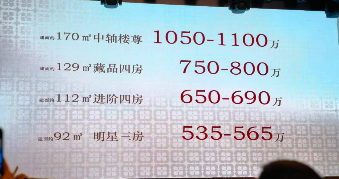 建面约112㎡四房,总价650-690万元,单价5.80-6.16万元/㎡;