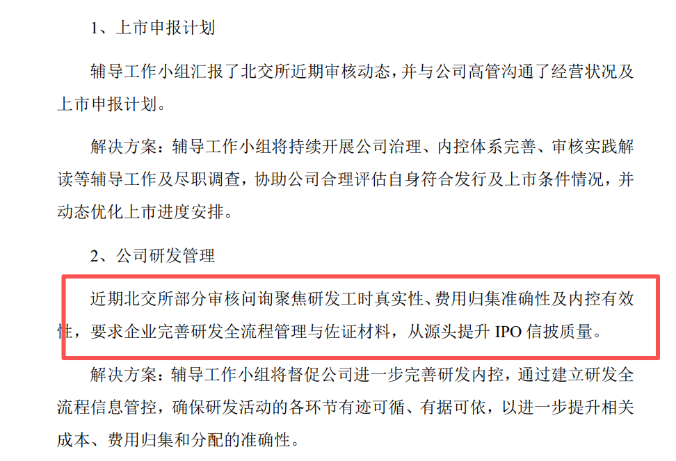 近期北交所部分审核问询聚焦研发工时真实性、费用归集准确性及内控有效性,要求企业完善研发全流程管理与佐证材料,从源头提升 IPO 信披质量。