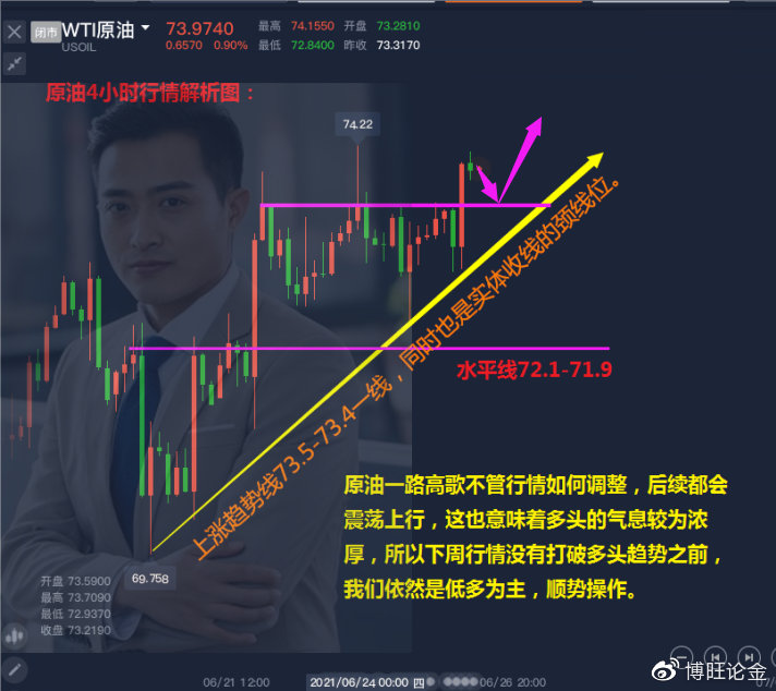 参考思路二:下周一白盘首次回踩73.4-73.2做多,止损72.8,目标73.9-74.3-74.9附近;