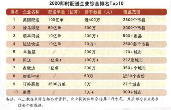 乍看排名够光鲜,然此前西南证券研报曾指出,2020年即时配送业已呈现双寡头垄断格局:美团配送市占率47.2%,蜂鸟+点我达市占率20.7%,两者份额已超67%,达达约4.1%,顺丰同城仅约1.2%。