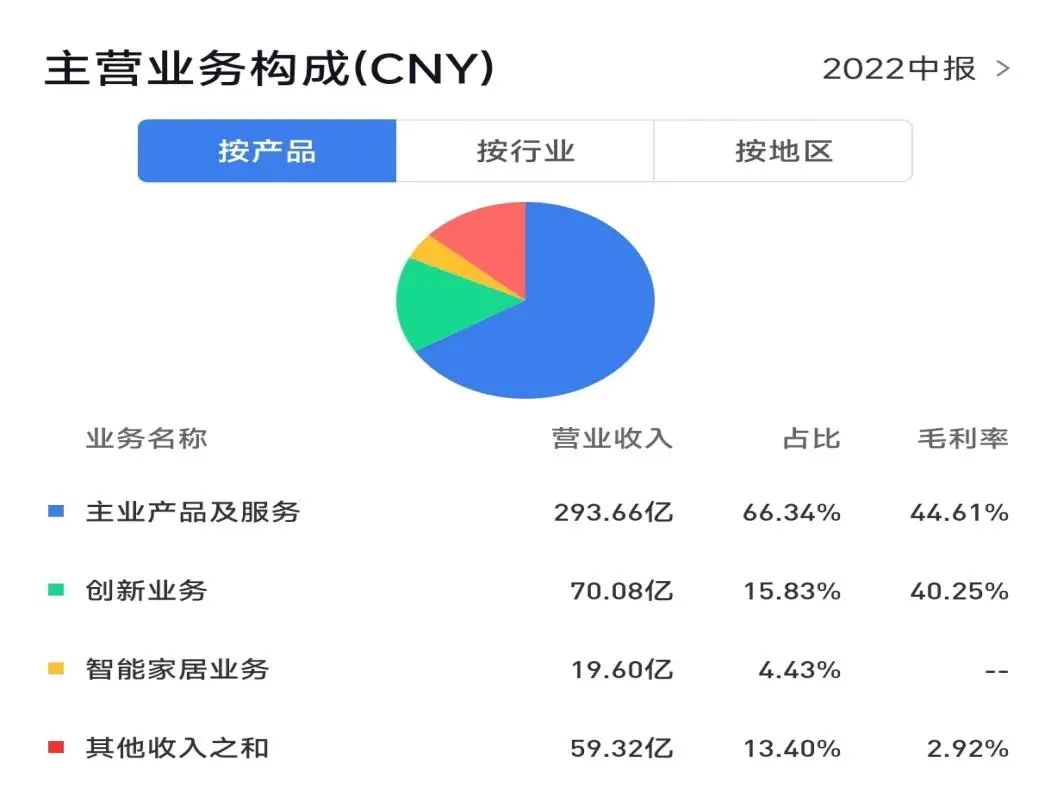 同时,毛利率也有待提升,以2022上半年为例,主营产品及服务和创新业务分别为44.61%和40.25%。