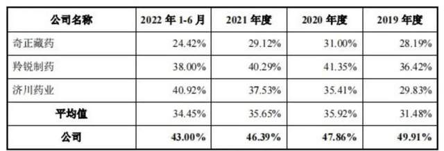 2019 年-2022 上半年,中成药毛利分别为 2.45 亿元、2.28 亿元、2.1 亿元及 8004.19 万元,持续下滑;毛利率为 79.38%、82.22%、79.17%、76.05%。