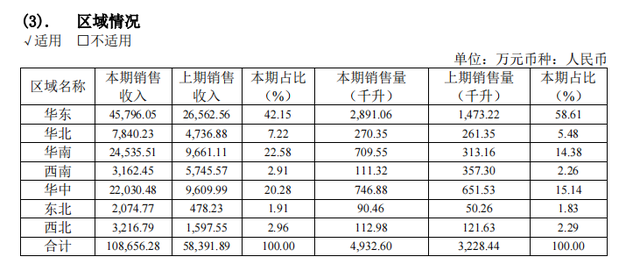 只是奋战两年多,从结果看营收大头主要集中在华东、华中、华南地区,其他区域表现一般。以华东为例,2022年营收4.58亿元,同比增长72.41%,营收占比42%。而西南、西北、东北地区占比不足3%,如西南仅5746万元,占比2.91%。