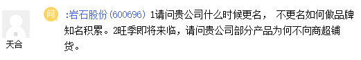 岩石股份表示,将坚持长期主义,为消费者酿造更美好生活的企业使命和品牌诉求为更多消费者所接受和认可。