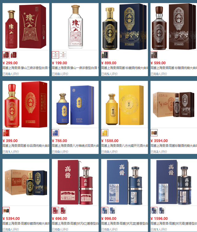 浏览高酱上海贵酒京东旗舰店,酱酒产品价格带较为广泛,包含788元、899元甚至1588元、1596元的高价款。但从销量看有些乏善可陈。