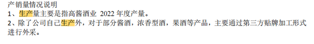 2022年报坦言“除了公司自己生产外,对于部分酱酒,浓香型酒,果酒等产品,主要通过第三方贴牌加工形式进行外采。”