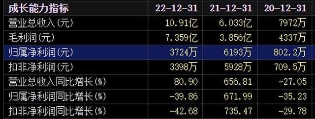 更何况,相比2021年656.8%的营收增速,2022年也属“小巫见大巫”,甚至增速还有明显放缓。