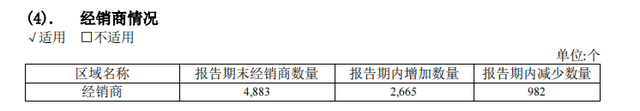 2022年报显示,报告期末岩石股份经销商量为4883家,报告期内增加量2665家,报告期内减少量为982家。