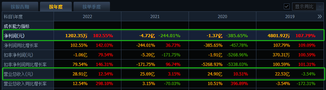 同期净利4801.92万元、-1.37亿元、-4.72亿元、1202.35万元,对应增速107.79%、385.65%、-244.01%、102.55%。
